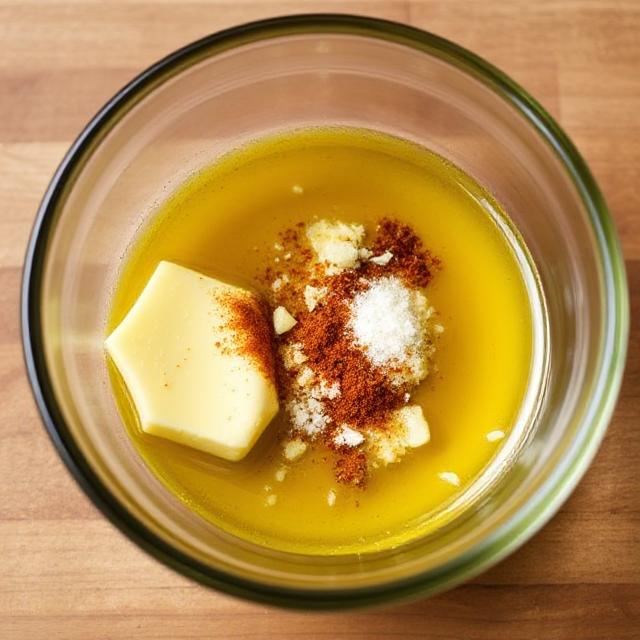 In a small bowl, mix your melted butter, olive oil, minced garlic, paprika, salt, and pepper. It smells amazing already, doesn’t it? - Brush them up.