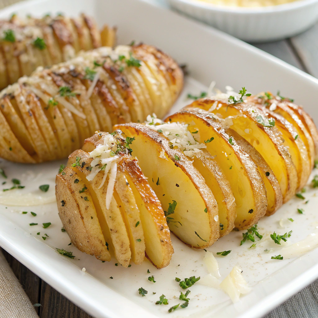 Okay, so these potatoes are kind of ridiculous. Like, way fancier-looking than they actually are. You’ll make them once and then immediately start wondering what else in your life could benefit from garlic butter and cheese (the answer: everything). They’re crispy on the outside, soft and creamy inside, and they pull apart in these little layers that just beg to be eaten straight off the pan.