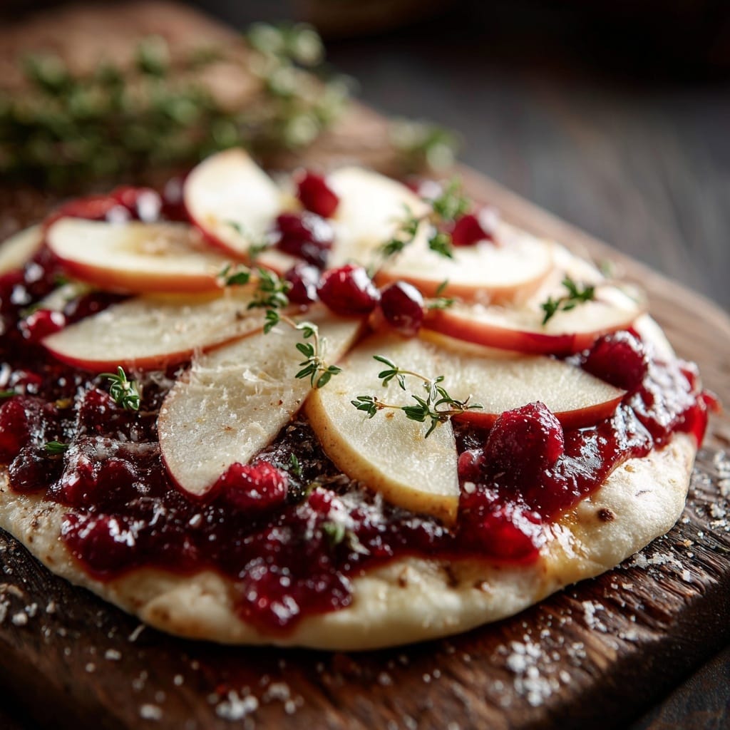 The first time I made it, I didn’t really plan to. I had leftover cranberry sauce in the fridge from a holiday dinner, half a wheel of brie that needed using up, and one lonely apple sitting in the fruit bowl. I spread everything on a flatbread, threw it in the oven, and hoped for the best — and wow. It came out golden and bubbling, smelling like something you’d get at a little café that serves everything on wooden boards.