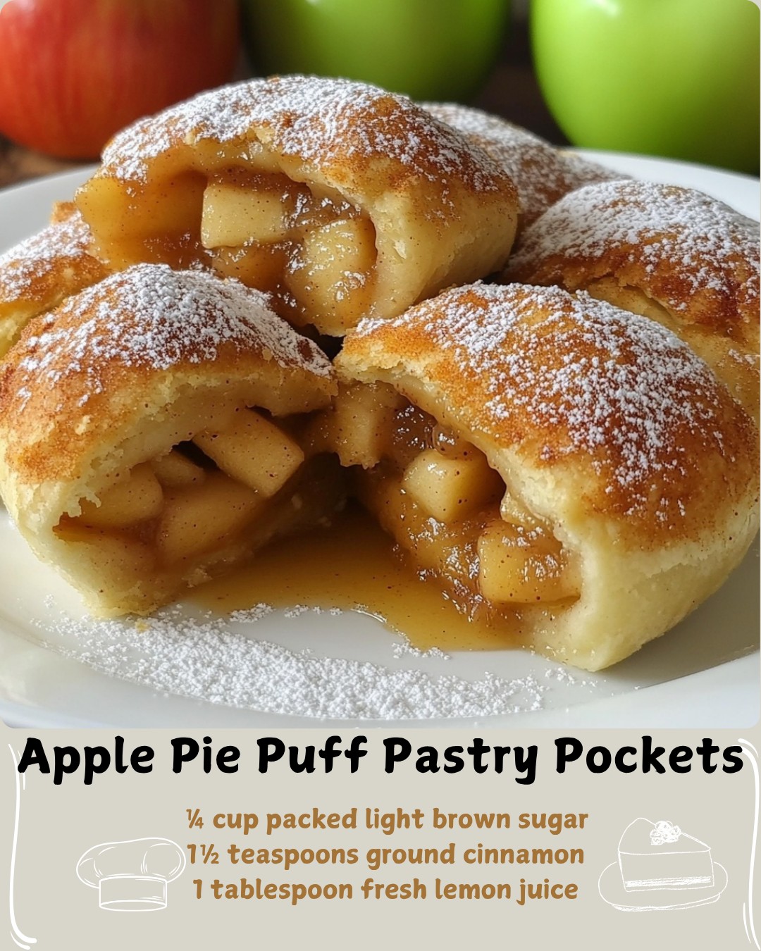 Each pocket offers a delightful contrast — crisp and buttery on the outside, warm and spiced within. They’re wonderfully easy to make, yet taste as though you spent hours in the kitchen. Enjoy them fresh from the oven on their own, or elevate the experience with a scoop of vanilla ice cream or a spoonful of whipped cream for a truly irresistible dessert.