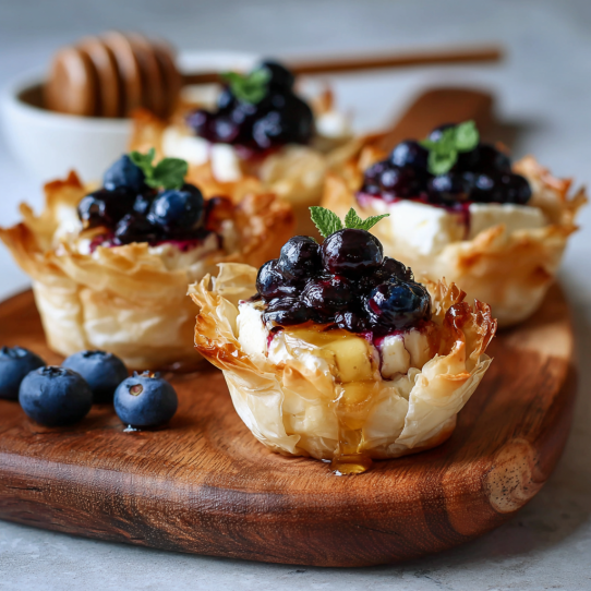 Blueberry Brie Phyllo Cups with Lemon Honey