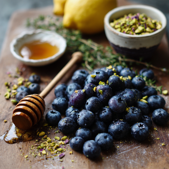 • When the cups come out, drizzle that warm lemon honey right over the top. Add a sprinkle of pistachios and a tiny leaf of thyme or mint if you’re feeling extra.