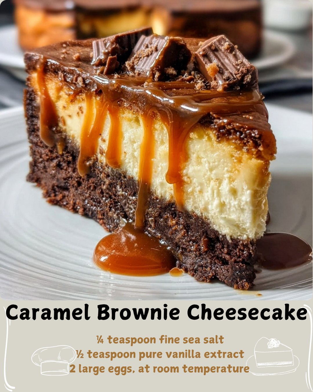 There are desserts that satisfy, and then there are desserts that silence the room. This Caramel Brownie Cheesecake belongs firmly to the latter — a masterpiece of textures and flavors layered in pure indulgence. Imagine a dense, fudgy brownie base supporting a velvety, vanilla-scented cheesecake, all crowned with a glossy drizzle of golden salted caramel. Every bite is a journey from deep chocolate richness to creamy, melt-in-your-mouth perfection, finished with that irresistible sweet-salty finish that keeps you coming back for one more forkful.