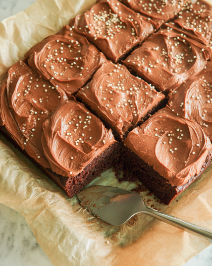 So whether you’re baking for a crowd, your kids, your coworkers, or just yourself on a Tuesday, this chocolate traybake is the recipe you’ll come back to again and again. Soft, fudgy, chocolatey, and wonderfully unfussy—exactly the way a timeless chocolate cake should be.