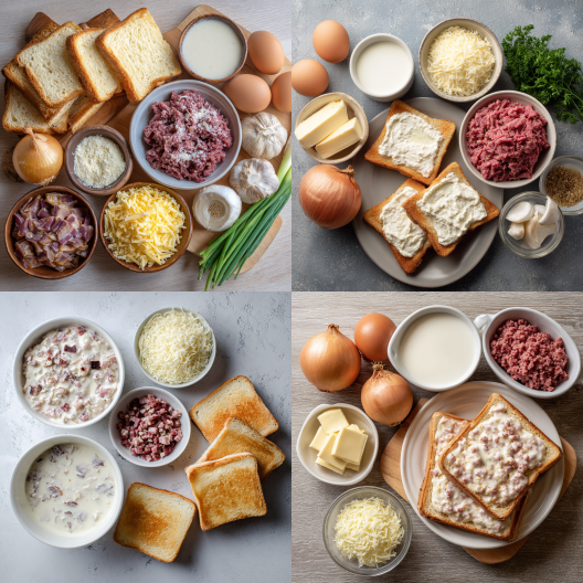 Chop up that dried beef into little bite-sized bits. Toast your bread to golden — you want it sturdy enough to hold up under creamy sauce. - Make the Roux