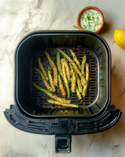 1. How do I make crispy green bean fries in the air fryer without them getting soggy?