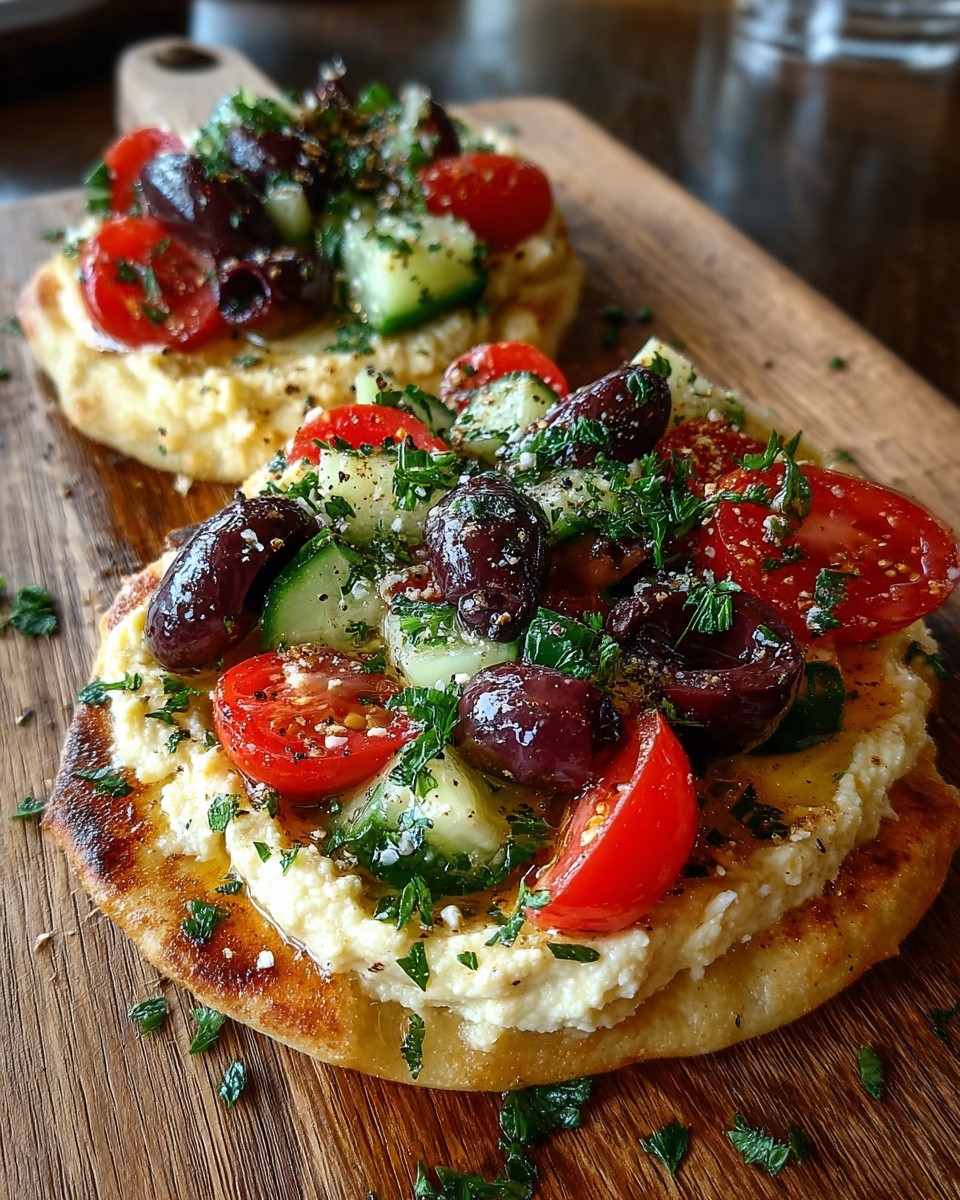 Top with cherry tomatoes, cucumber, olives, and sprinkle fresh herbs over the top. Drizzle with extra olive oil if desired.