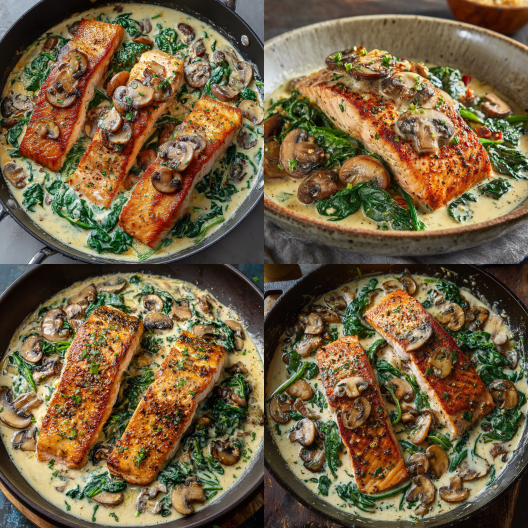 It’s one of those meals that tastes like it took hours, but really, it doesn’t. It’s buttery and garlicky and creamy — but not heavy. The salmon gets that perfect golden crust, the mushrooms soak up all the flavor, and the spinach just melts into the sauce like it was meant to be there. It’s simple food, but the kind that makes you close your eyes after the first bite.