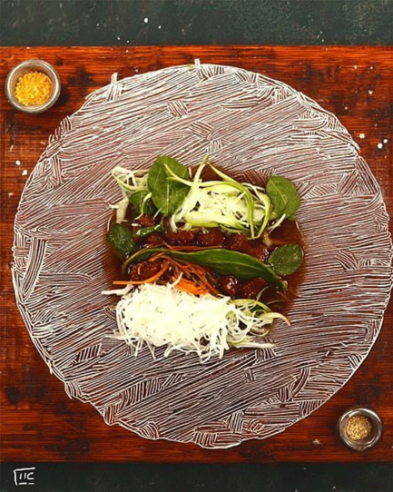 • Start by marinating the chicken — even 20 minutes does wonders. When it hits the pan, you’ll know you’re on the right track because the lemongrass smell becomes almost floral. Slice the cooked chicken into thin strips.