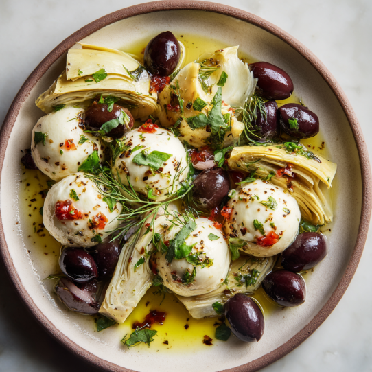 Alright — let’s slow down for a second. This one’s not a warm, cozy stew or a bubbling casserole. It’s simple. Cold. Fresh. But man, does it hit. There’s something kind of magical about a bowl of marinated mozzarella, artichokes, and olives — the way everything looks so alive with color and flavor. It’s the kind of thing you make when you don’t want to cook, but you still want something that feels like effort. You know?