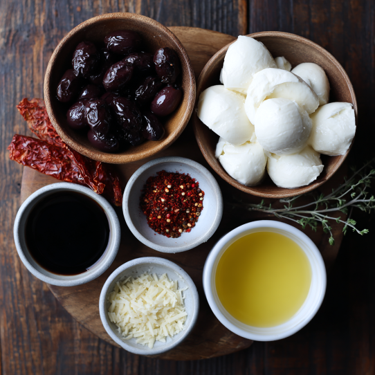 - 8 oz mozzarella balls (bocconcini or ciliegine), drained