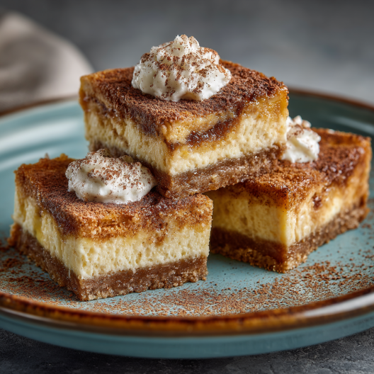 There are some recipes that just feel like home — and this one is it for me. My mom’s been making these Cinnamon Churro Cheesecake Bars for as long as I can remember. Honestly, I can’t think of a single family gathering, Sunday dinner, or random “let’s bake something sweet” afternoon that didn’t end with these sitting on the counter, still warm and smelling like butter, sugar, and cinnamon heaven.