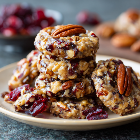 The first time I made these, I didn’t measure anything too carefully — and honestly, that’s part of the charm. You melt butter, sugar, and cream together until it smells like caramel and trouble. Then you stir in cranberries and pecans until it looks like a praline dream. When you spoon them out, they start to set just enough to hold their shape — chewy, sweet, and a little crunchy around the edges.