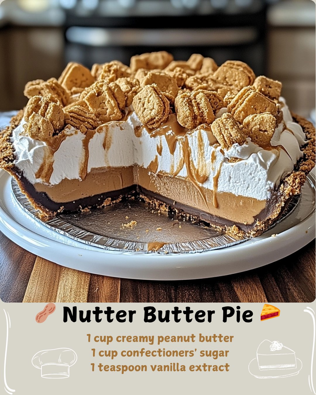 🥜 Nutter Butter Pie 🥧 – The Ultimate No-Bake Peanut Butter Pie You’ll Crave Again and Again