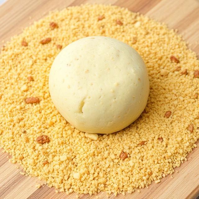 • Once it’s firm, unwrap it and roll it in crushed crackers or nuts. Press gently so it sticks all around.