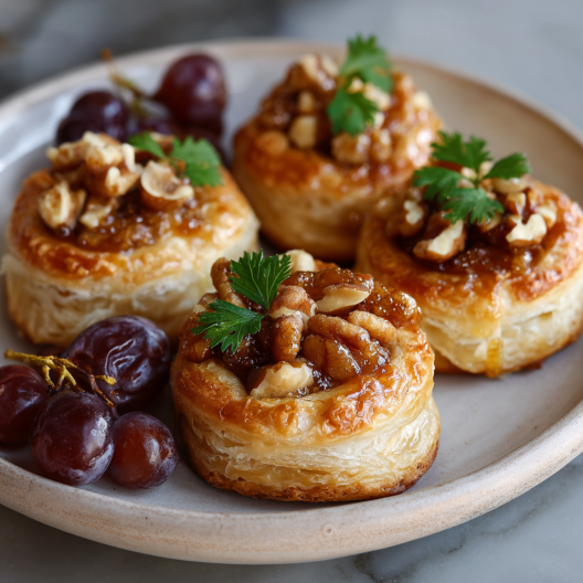 These little bites aren’t about perfection — they’re about joy, indulgence, and the kind of appetizer that makes people smile before they even taste it. The caramel, the nuts, the creamy Brie, the flaky pastry — it’s all about layering textures and flavors in a bite-sized package that feels like a hug.