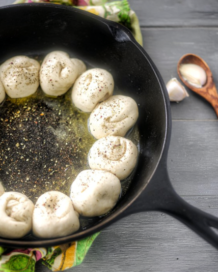 A 10- to 12-inch cast-iron skillet is ideal for an easy skillet biscuit bake. Anything smaller may overcrowd the biscuits, making them steam rather than brown. A larger skillet works but may result in thinner dip—still delicious, just a different ratio.