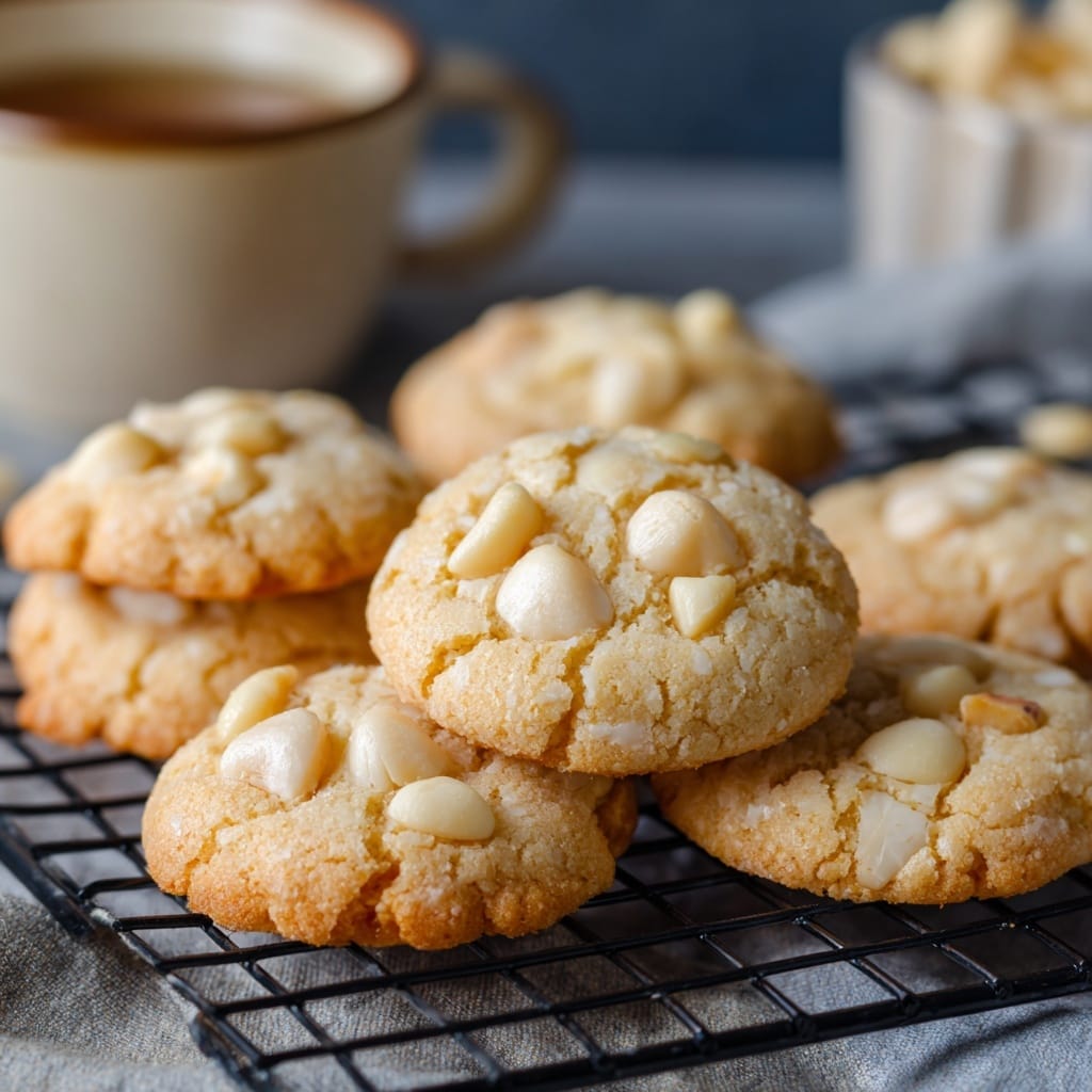 The first time I made these, it wasn’t for a holiday or a party — it was just a rainy afternoon when I needed a little pick-me-up. I didn’t even plan it; I just happened to have a bag of white chocolate chips and a small jar of macadamia nuts left from something else. I remember creaming the butter and sugar together, not really thinking much about it, until the smell started changing — that warm, nutty, sugary aroma that fills your whole kitchen and makes you stop for a second because it just feels so good. By the time the first batch came out of the oven, I already knew they were going to be something special.